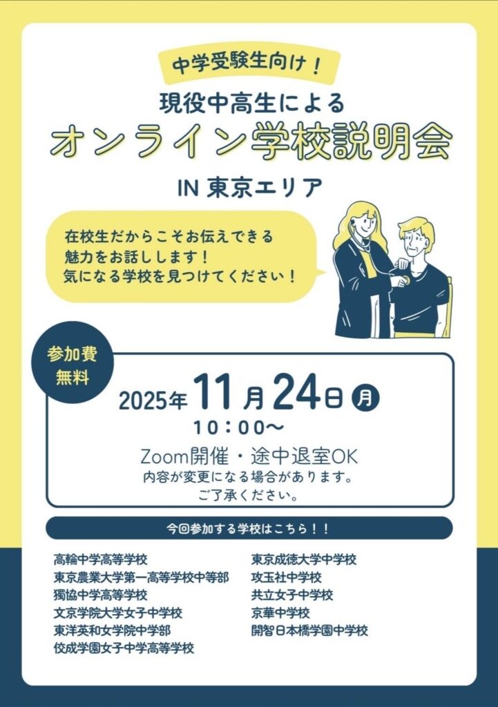 11月24日(月)に開催されるオンライン合同学校説明会に、本校の広報委員が参加します。...