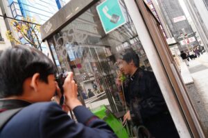 生徒たちは新宿駅東口に集合し、駅周辺の賑わいや新宿ならではの雑踏、そして異国情緒あふれる街並みなど、思い思いに撮影しました。その後、海城中学高等学校に移動し、各自、この日撮影した写真の中でベストな1枚をチョイス。その写真をスクリーンに映しながら、両校の生徒同士で批評会を行いました。
