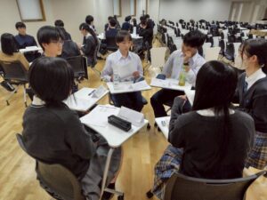 普段男子校で生活している生徒たちは、女子校や共学校という異なる環境で学ぶ同年代の意見に真摯に耳を傾け、自らの価値観をあらためて見つめ直す機会となりました。また、他校の生徒の皆さんとの交流を深める貴重な時間ともなりました。