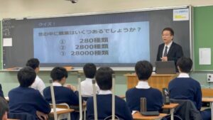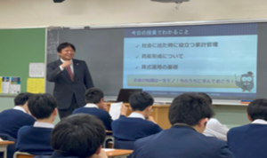 2025.1.14(水)、高校1年生全クラスに「人生を豊かに かしこい投資のヒケツ」という題名の特別授業を実施しました。