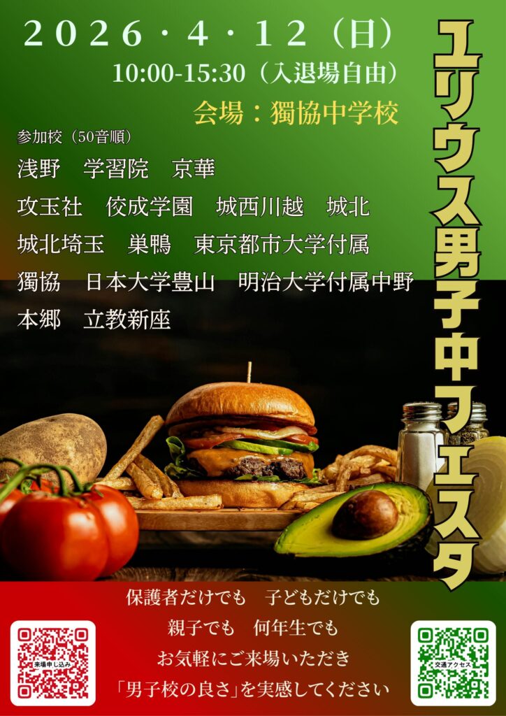4/12(日)に獨協中学校で開催される「ユリウス男子中フェスタ」に参加します。...